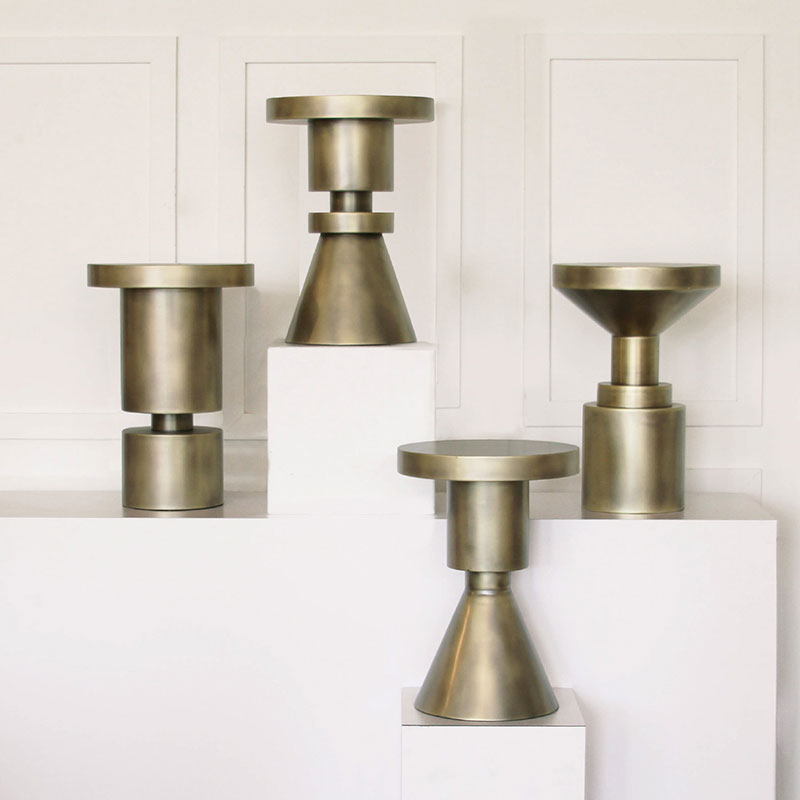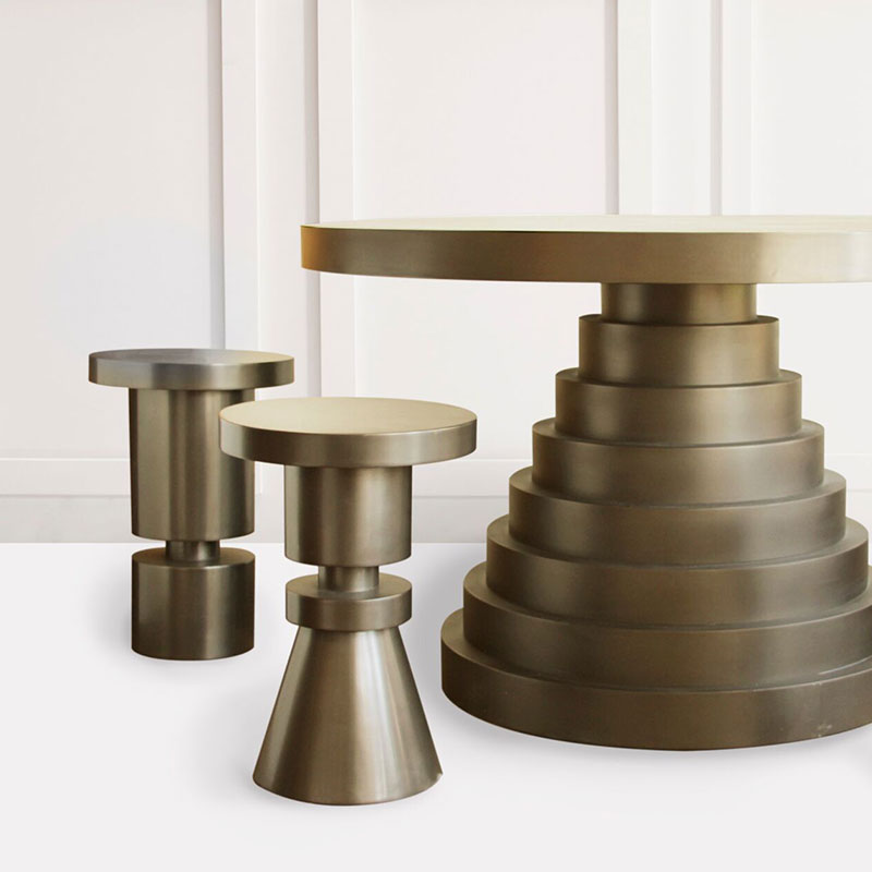 Each piece is custom made so the size can be adjusted according to your needs. Previous commissions have included dining tables, end tables, a teak set for outdoor use and a wide variety of metallic finishes. Anna Karlin is also able to match any color.