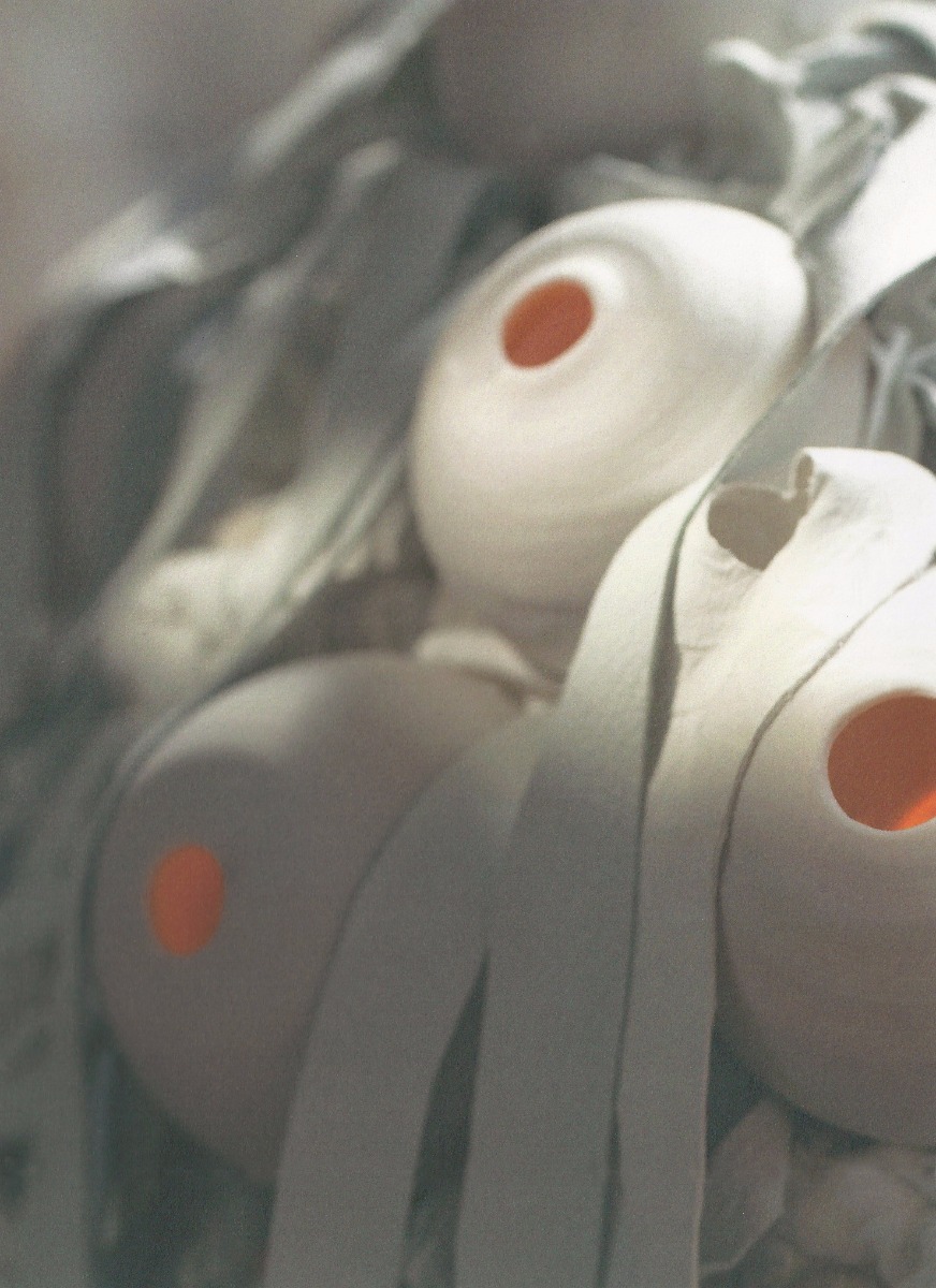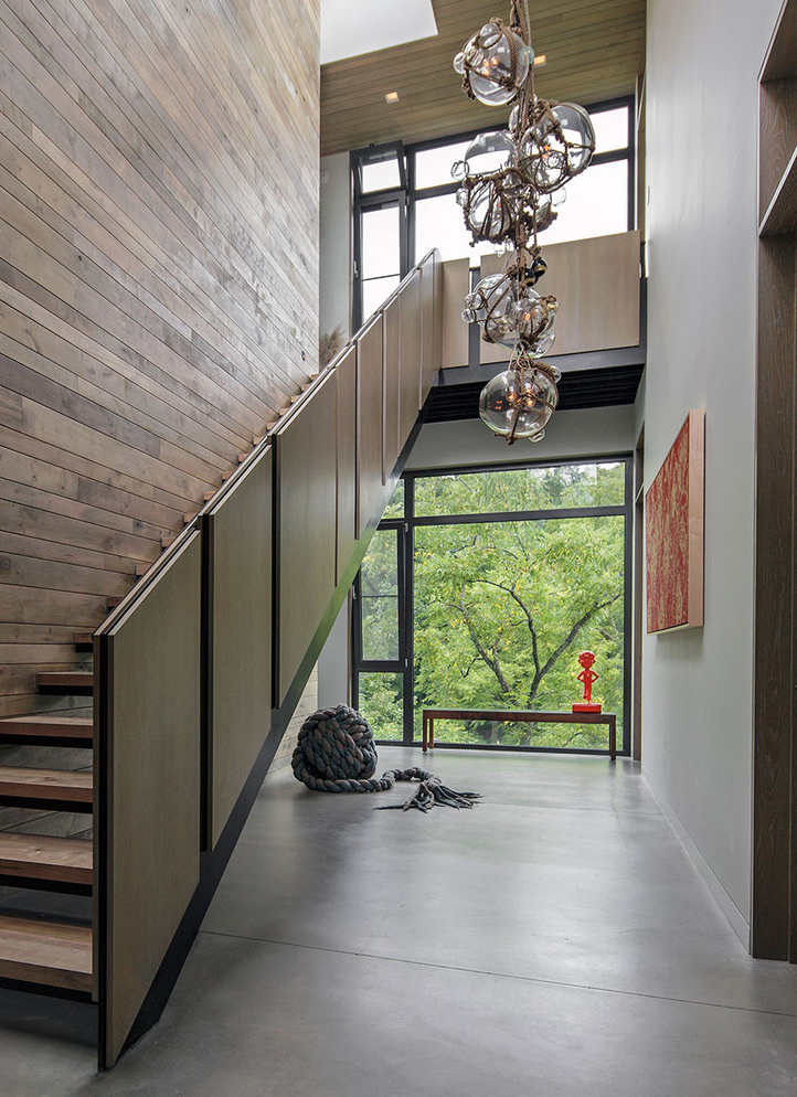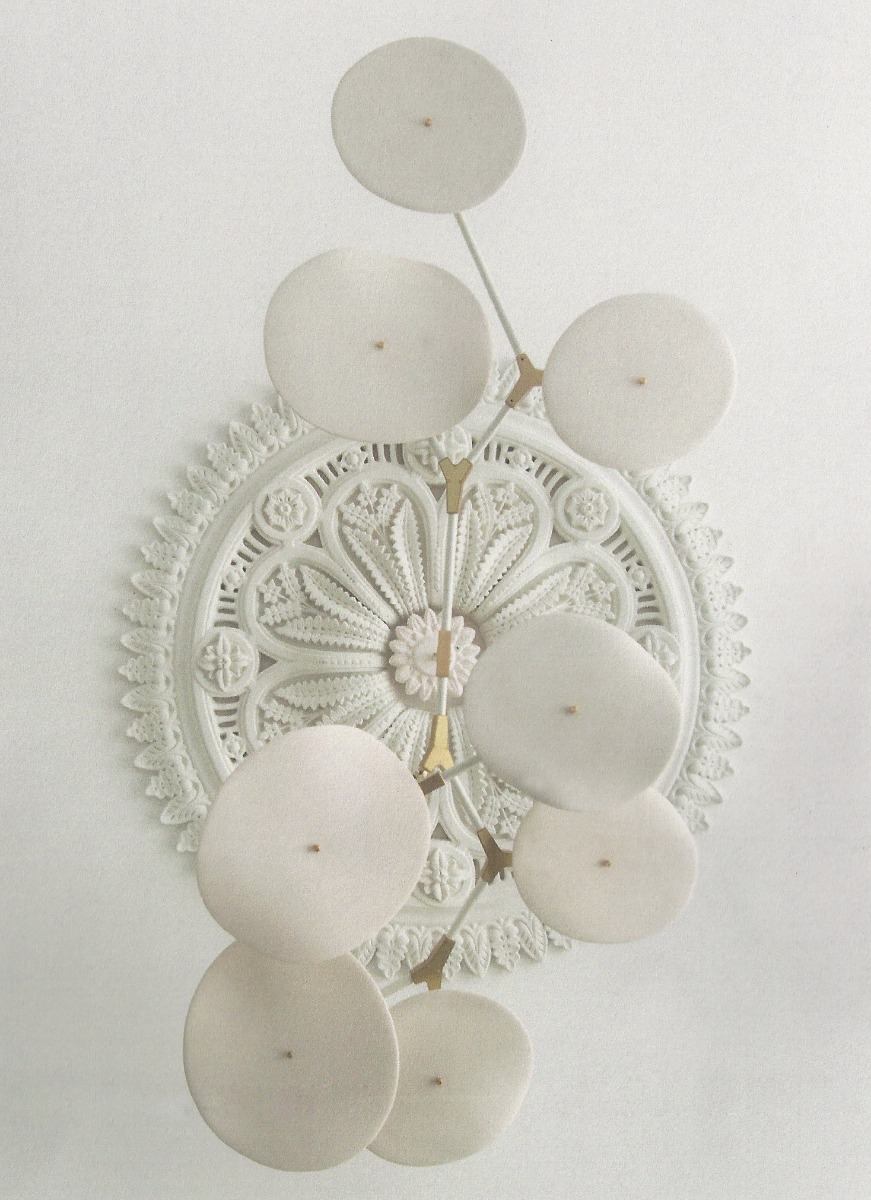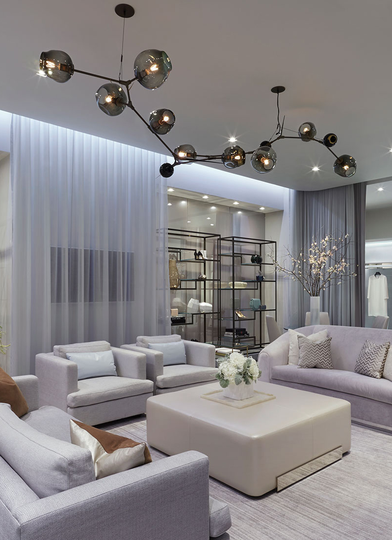 Branching Chandelier with custom powder-coat arms, brass hardware and porcelain shades