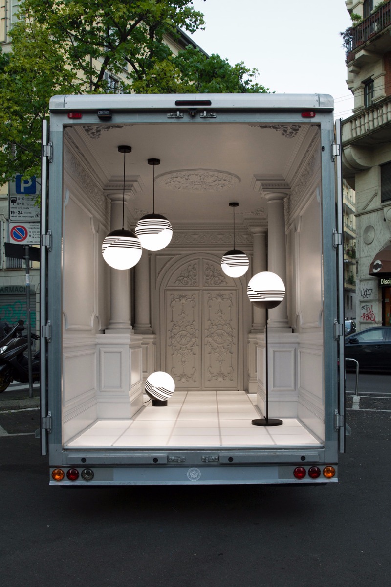 During Salone del Mobile the London based designer, Lee Broom, is displaying new work throughout Milan in a repurposed, and refinished, delivery van. Broom has titled his mobile exhibition, "Salone del Automobile."