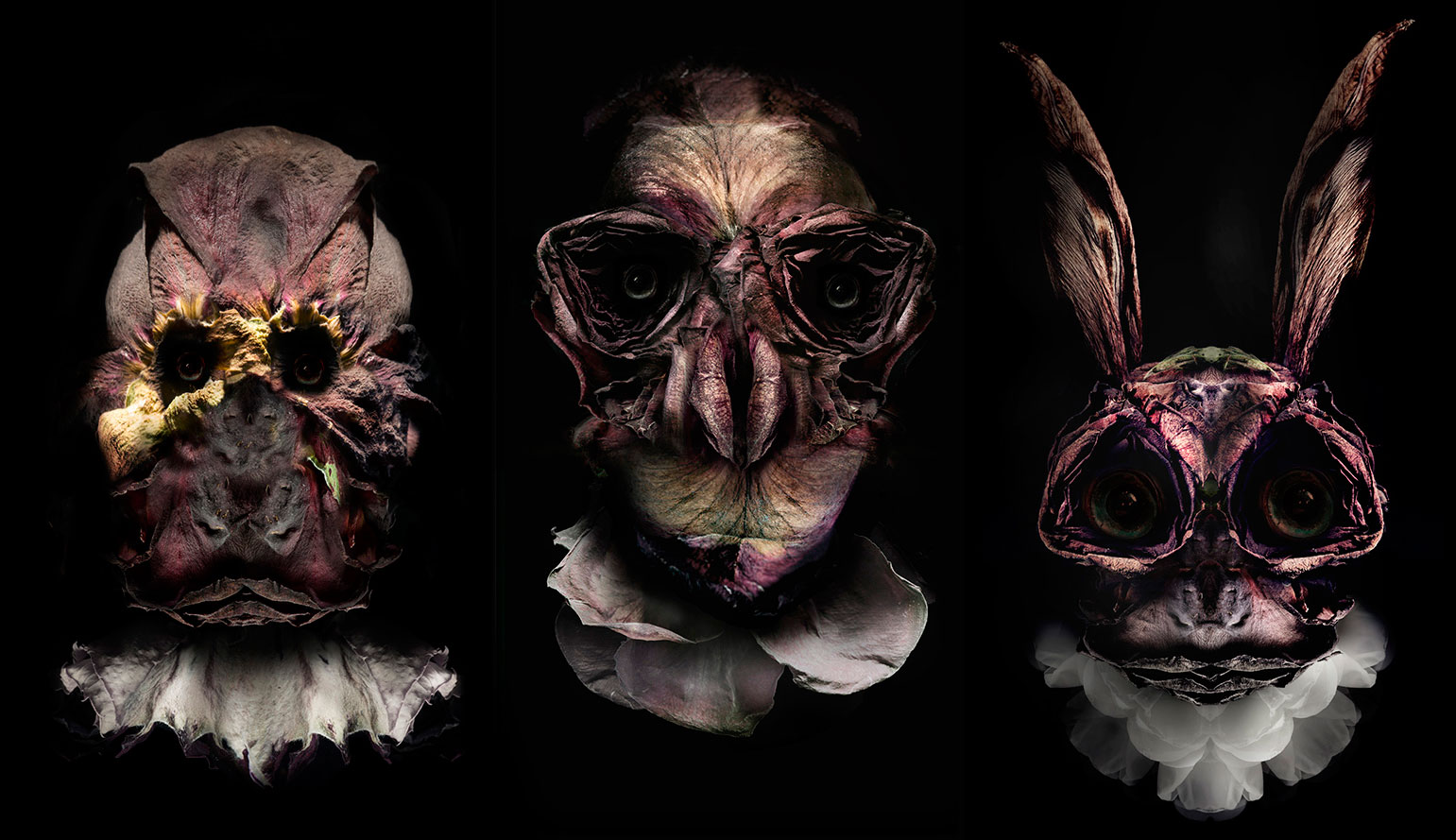 As the name suggests, one aspect of “Portraits” depicts beautifully rendered creatures coming to life in the three part digital video installation “Athanasius,” which Wanders has composed from rose petals. The images appear as if they sprout to life and are very remeniscent of the 16th century painter Giuseppe Arcimboldo.