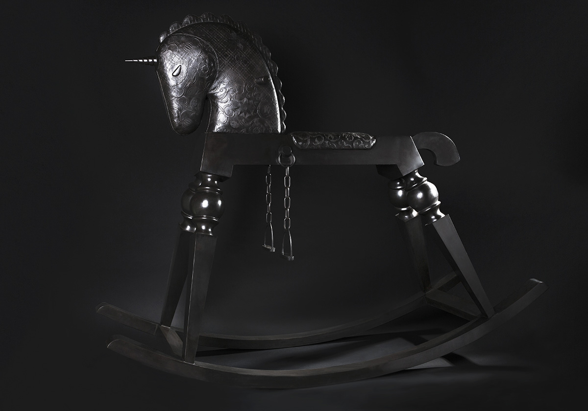 And lastly is Tempter, “an over-sized adult rocking unicorn cast in bronze with metal chain stirrups.” This piece perfectly completes the show as fans of Wanders will recognize this as an interpretation from his solid wood rocking chair, Arion. Once again showing that Wanders is not just about “positivity, respect, love and trust” but instead is a true visionary and artist not afraid of going deep within his own personal emotions and connecting to a side that is not as mainstream as the work we normally associate with him.