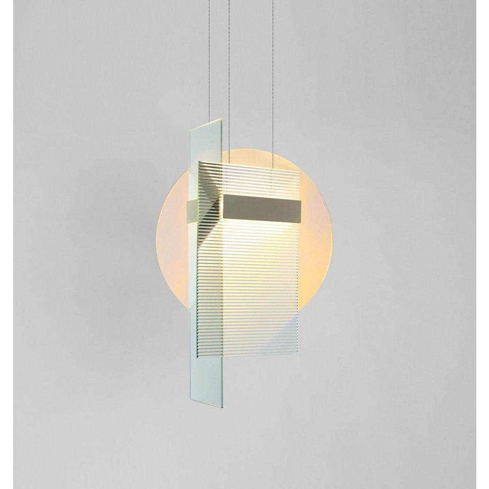 The Kazimir series is inspired by the early twentieth-century Russian modernist Kazimir Malevich, whose flat monochromatic canvases, colorful geometric compositions, and textured collages challenged existing notions of painting. Here, his ideas are transformed into three dimensions with pieces of textured and dichroic glass arranged in layers.