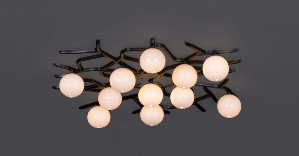 Inspired by natural phenomena, Branching designs explore the visual tension that results from mixing hand-made, sensual forms with precise, machined components.