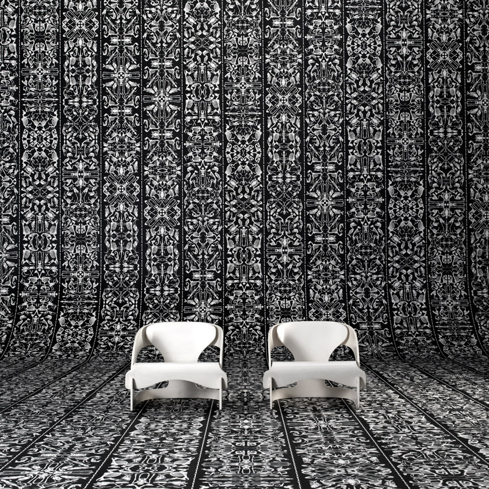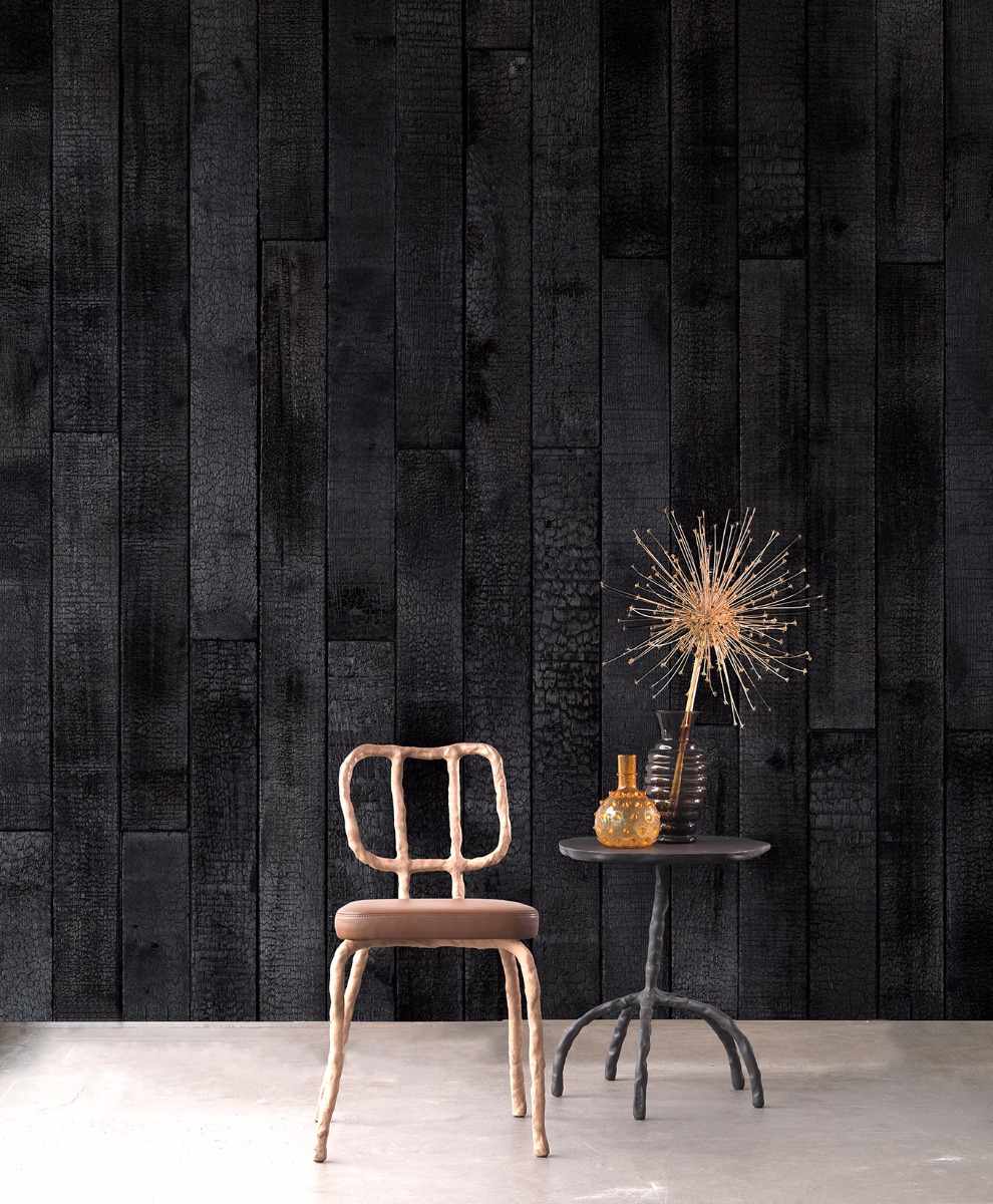 “A lot of companies have made marble reproduction products, but never in the way we envisioned it. So we decided to give it a try. When the printing proofs came in we were thrilled. You just want to install it everywhere! Besides marble we were working on other materials, like a Burnt Wood wallpaper. We decided that we could not do this without the expertise of Maarten Baas, famous for his Smoked furniture collection. Maarten liked the idea, and together we made a Burnt Wood wallpaper.”