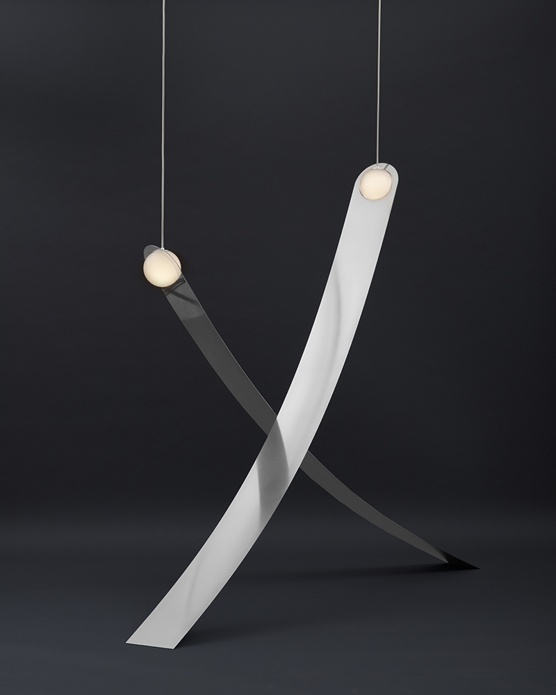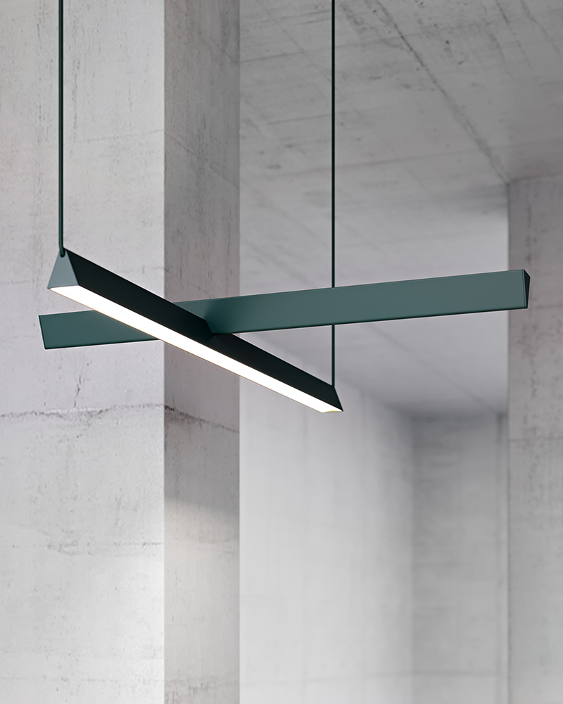 "Mile is a technical lamp characterized by an asymmetrical luminaire. Created in direct collaboration between the company's founder and the Canadian designer Guillaume Sasseville, Mile is a highly-featured design lamp, in which the use of linear LEDs and embedded cables in the structure accentuates the 'absence of gravity' almost creating the illusion of levitation."