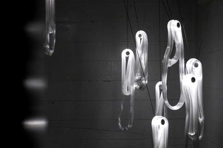 "What happens when soda water combines with an extremely hot glass matrix? Meet Bocci's 87 LED light, which loops and folds back onto itself, for unexpected arrangement with no boundaries."