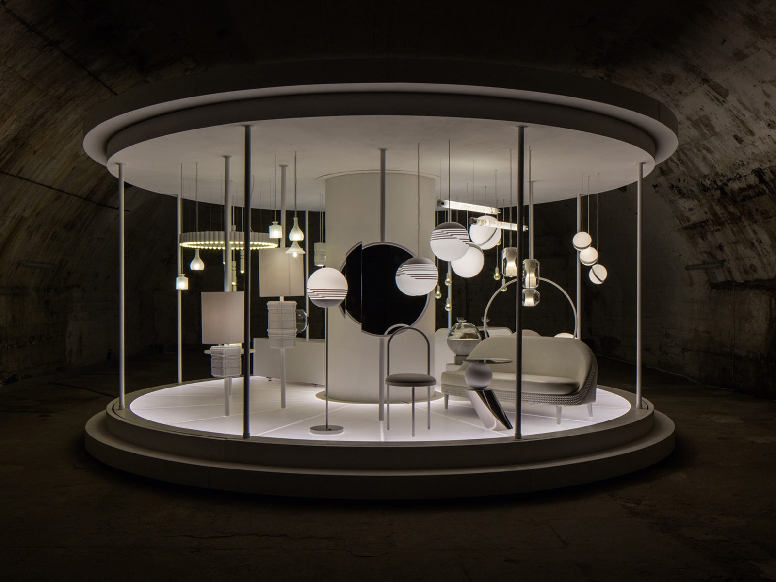 "Within an abandoned vaulted storage room next to the historic Milano Centrale station, a white carousel spun—the only object in a raw, unfinished space. On that carousel, visitors found reimaginings of furniture, objects and lighting drawn from ten years worth of English designer Lee Broom's collections.