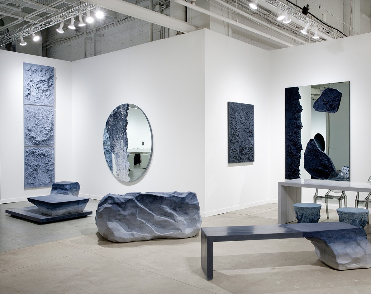 Above, Mayor's work pictured in situ at the Collective Design fair, alongside other designers represented by Twenty First Gallery (his NYC representation).