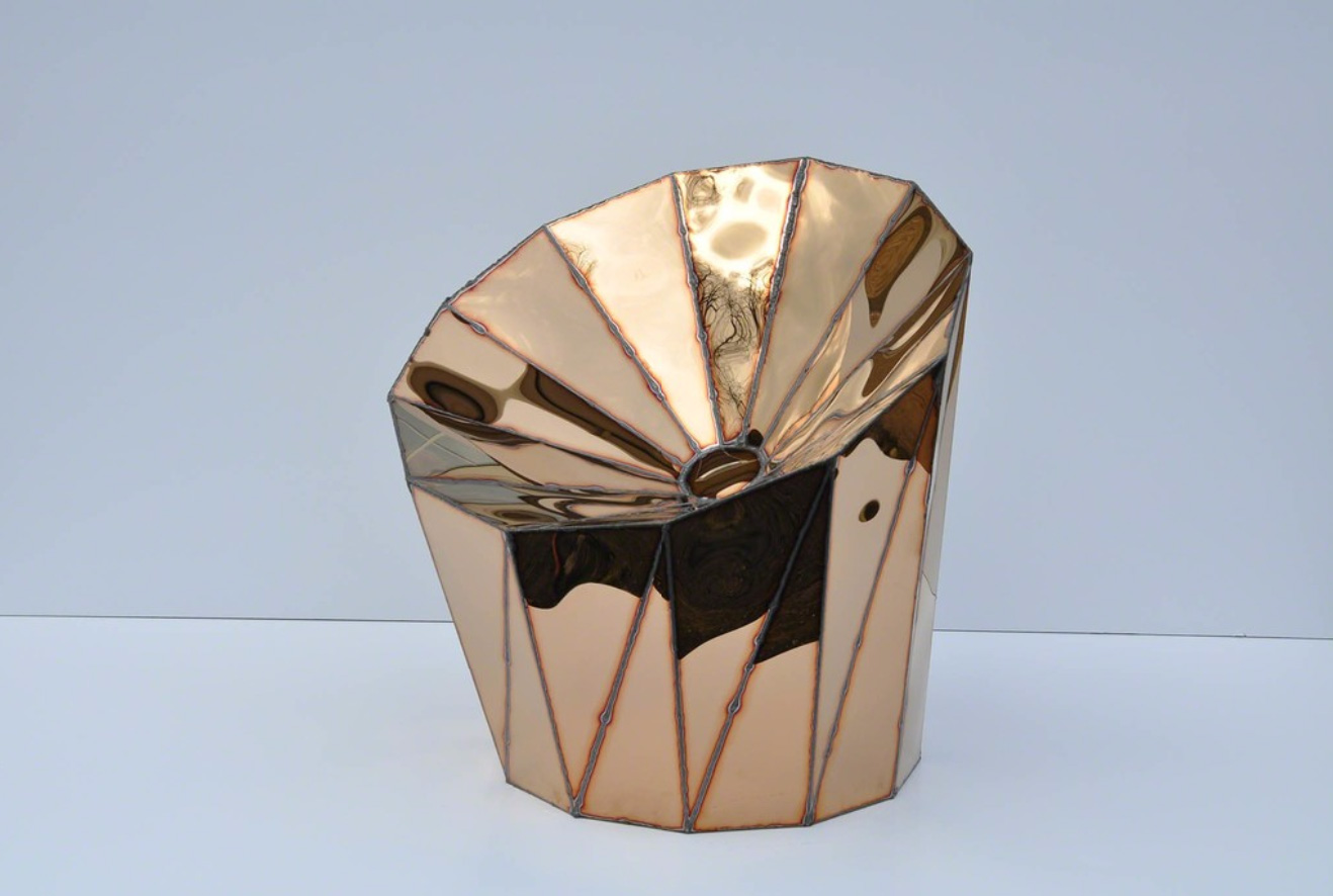 The British artist and designer, Julian Mayor, exhibited his latest creation, Solaris. This chair has a copper finish over varnished steel.
