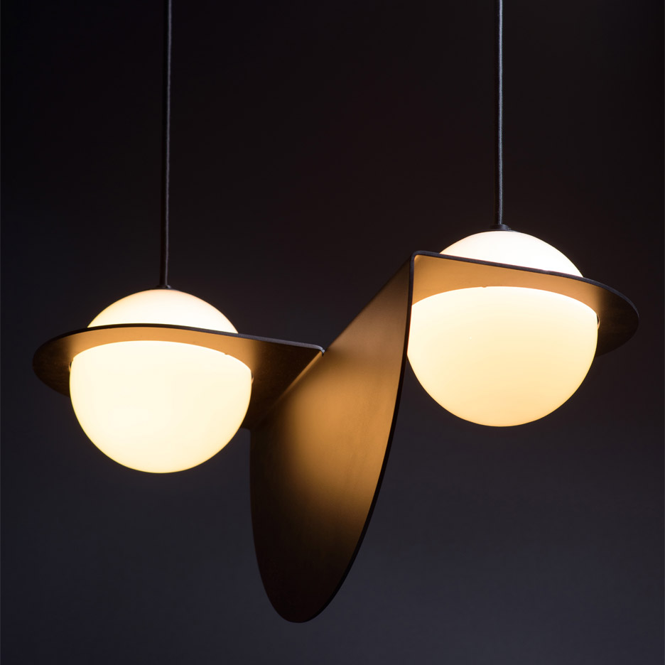 Montreal lighting designers and manufacturers Lambert et Fils will be releasing their new Laurent collection which include 6 new pendants and chandeliers with the theme of globes penetrated through their equators by brass and black steel ornaments.