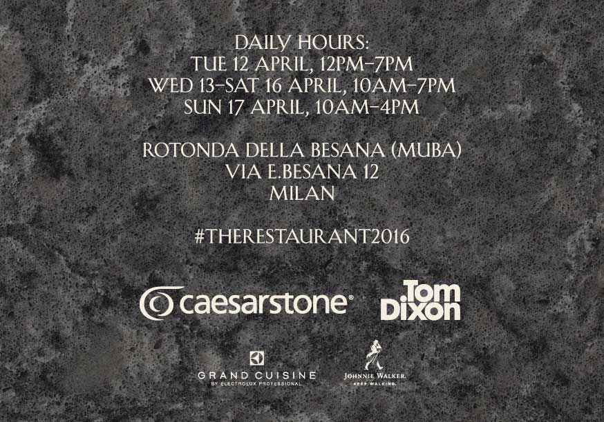 And to complete “The Restaurant”, Tom Dixon and Caesarstone will fully immerse designers by serving different courses “in each space, curated by Italian food design studio Arabeschi di Latte.”