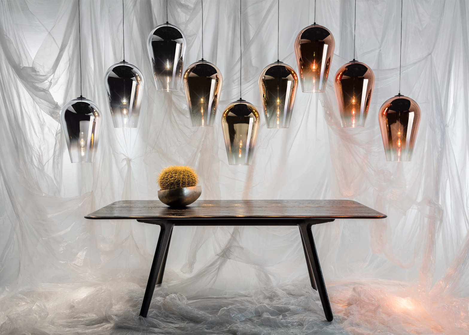 COPPER the familiar sphere gets squashed then stretched to create a new pair of complimentary forms in the trademark mirrored copper, allowing new clusters to be formed, lower ceilings to be illuminated or narrow corridors to be colonised by the Copper family.