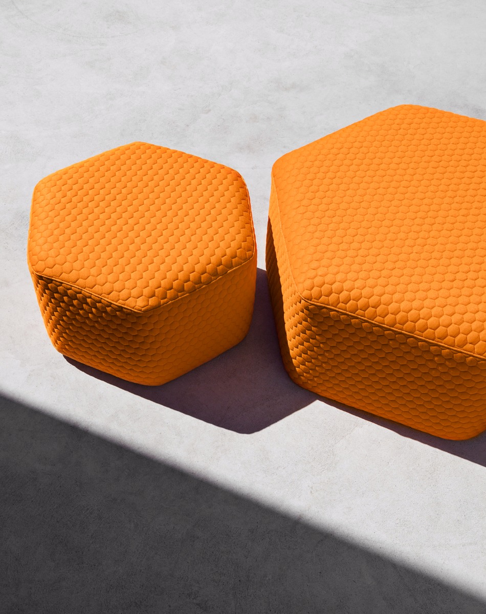 The Hexa Stool and Lounger collection is an Italian-made series that creates a versatile interplay of hexagonal shapes and colors that can be arranged in an endless assortment of outdoor configurations. Available in three sizes and two heights.
