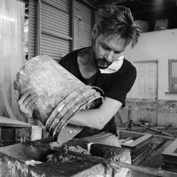 Los Angeles-based artist James De Wulf, has been widely recognized for his original and innovative work with concrete design. Known for his commitment to pushing the limits of his art both functionally and aesthetically, James fuses concrete technology with modern and natural concrete forms and other materials including bronze, brass, steel, stainless steel, and iron.
