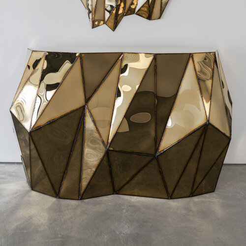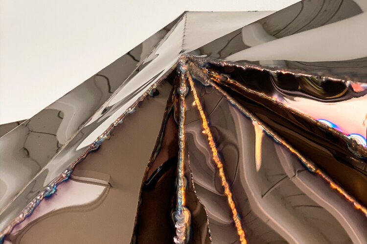 Twentieth is pleased to present new and exclusive work from London-based artist, Julian Mayor for an exhibition at THE NEW. Mayor is known for his innovative process where he digitally designs his pieces and then hand-makes each one using traditional techniques such as TIG welding. The weld seams are left unfinished, allowing a viewer to experience and understand the craft. Mayor’s technique is inspired by the sculptural possibilities of a high-tech approach while also embracing the idiosyncrasies and individuality of the hand-made. Welded sculptural works were created exclusively for this exhibition including both standing and hanging light sculptures, large wall pieces and more; all made using a range of metallic finishes.
