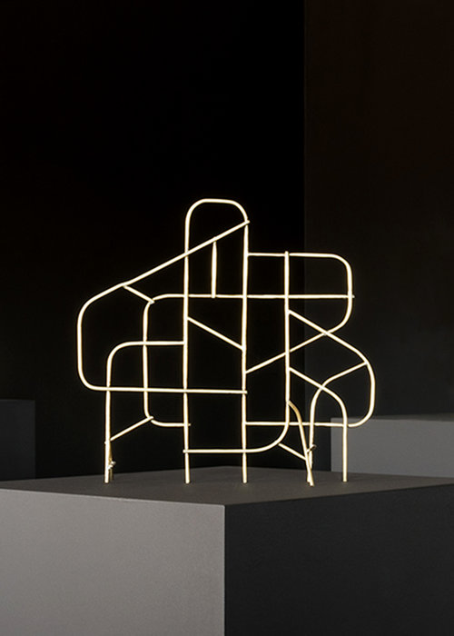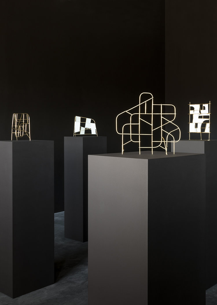 Todd St. John is a New York based designer and artist whose work crosses multiple disciplines and media. In the surfaces and forms of all St. John’s work—whether furniture, product, graphic campaign or illustration—reside the crosscurrents of his varied experiences and interests in texture, scale, light, movement, image, abstraction, and materiality. His furniture and installation works, which debuted in 2015, focus on minimal yet playful forms rendered in natural materials with an eye for fine craftsmanship and detail. The Division series of works featured in the exhibition are comprised of large scale airy geometrical structures formed from solid brass, alongside a series of experimental maquettes that expand the project with variations of form and media.
