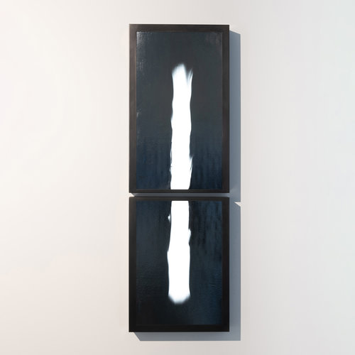 The Meltforms exhibition consists of a series of glass and metal sculptural lightboxes illuminated with internal LED lights. Videre Licet began working with glass about a year ago, attracted to its natural beauty and luminous qualities. Along with setting up their own small glass studio, Videre Licet started working with various glass craftspeople and facilities to produce a new series of glass works, the Meltform lightboxes being one of their initial experimental and art-related launches, to be followed by a more production-oriented, functional lighting line in 2019. Different colors of glass are melted in furnaces and poured onto a steel plate, where they are folded into each other while molten and then rolled through a steel mill to flatten them into sheets, creating unique patterns as the glass colors melt and fuse into each other.